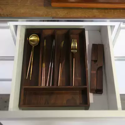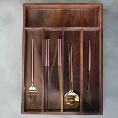 Black walnut split tableware stationery accessories storage box kitchen solid wood knife and fork chopsticks storage box