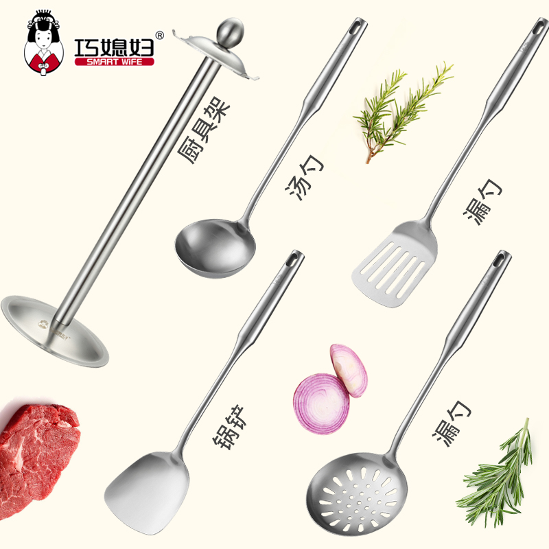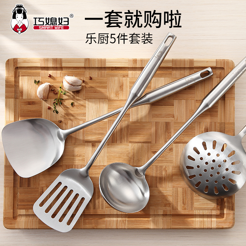Smart wife spatula set stainless steel spoon shovel soup spoon colander cooking full set of spatula household kitchen five-piece set