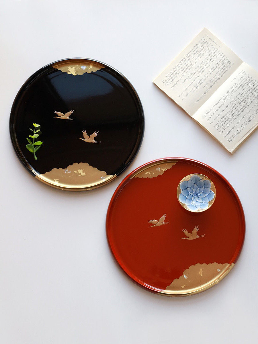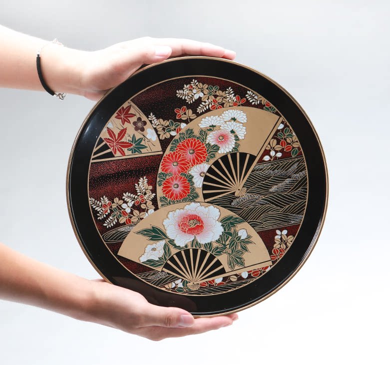 30 cm dance fan tray 30 cm cherry blossom pan dark red 30 cm cherry blossom pan red 27 cm gold leaf cranes 30 cm gold leaf autumn grass pan 27 cm double cranes pan black 27 cm double cranes red