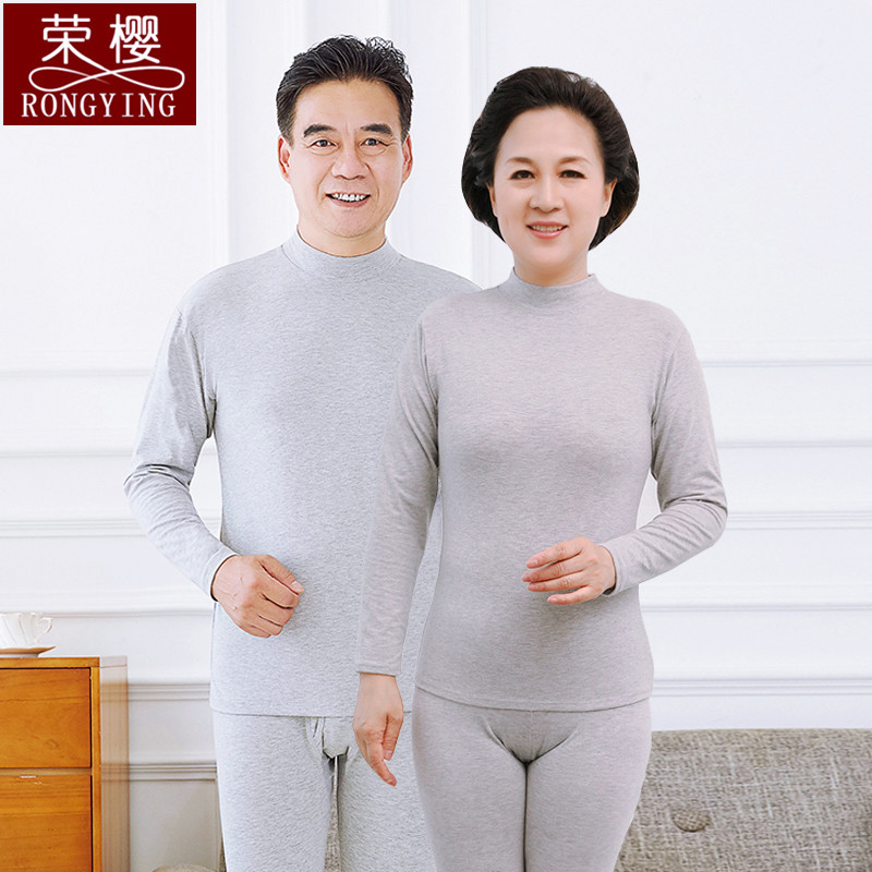 Autumn clothes sanitary pants thin white cotton men's and women's high collar sanitary clothes Sanitary pants middle and old cotton shirt inner pants suit