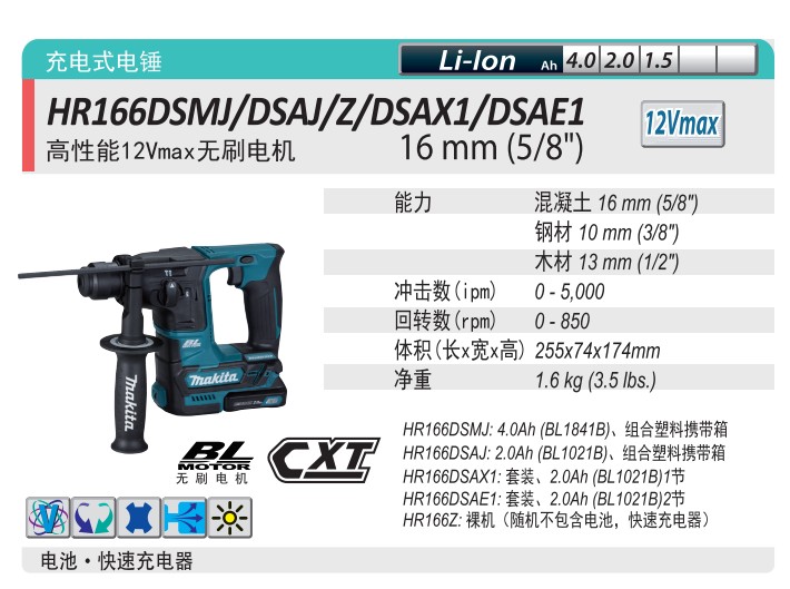 HR166DSAJ (2 electric 1 charge 2 0AH) HR166DSMJ (2 electric 1 charge 4 0AH) HR166DSAX1 (1 electric 1 charge 2 0AH