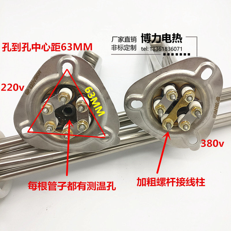 Triangle plate water heater electric heating tube 304 stainless steel dishwasher heating tube 220v3kw 380v6 9 12kw