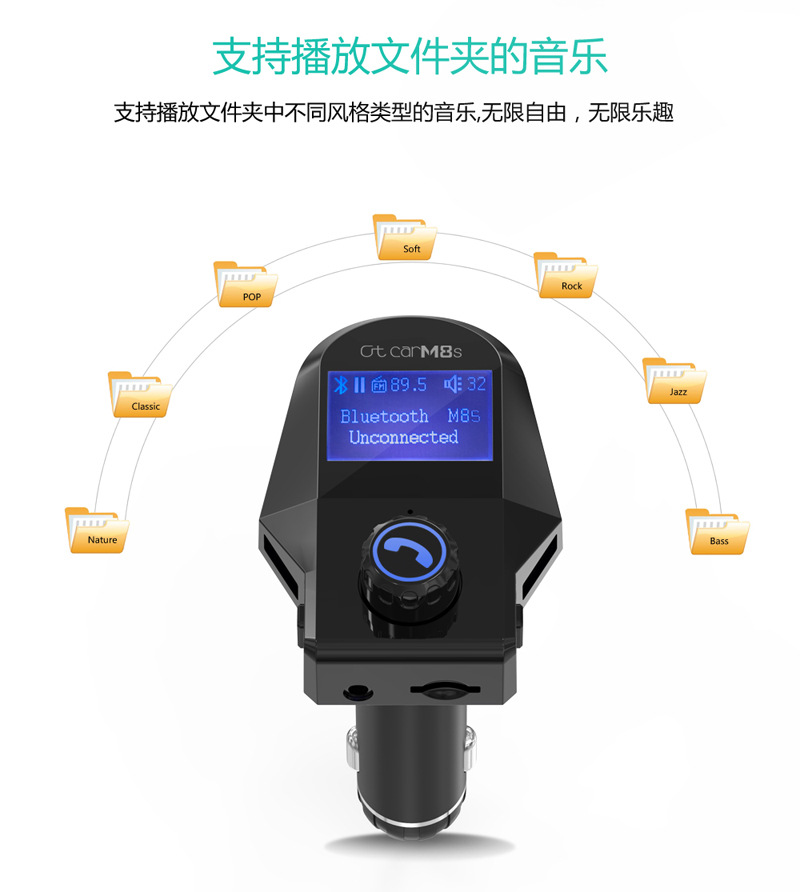 M8S new on-board wireless Bluetooth hands-free smartphone music on-board MP3 car on-board charger