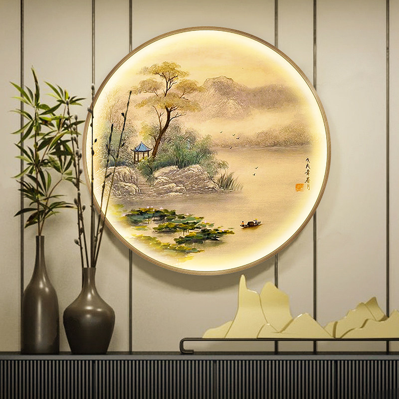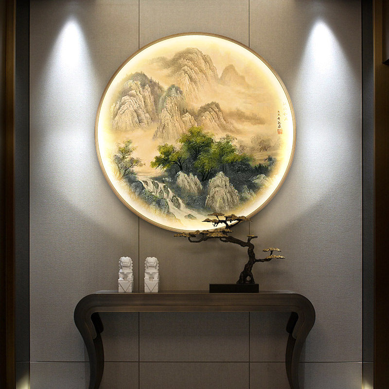 Pure Hand Painted New Chinese Round Oil Painting Light Extravagant Living Room Landscape Painting Fresco Decoration Painting into Gate Xuanguan scenery hang painting