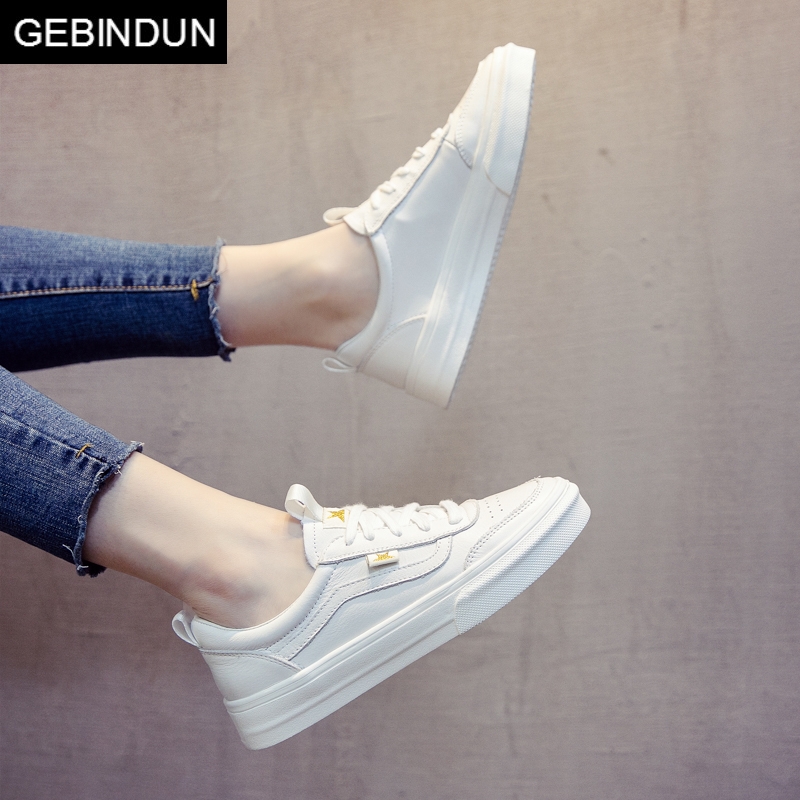 GEBINDU light luxury small white shoes women's basic wild Korean version of leather lace-up shoes street shooting thick bottom spring and autumn seasons
