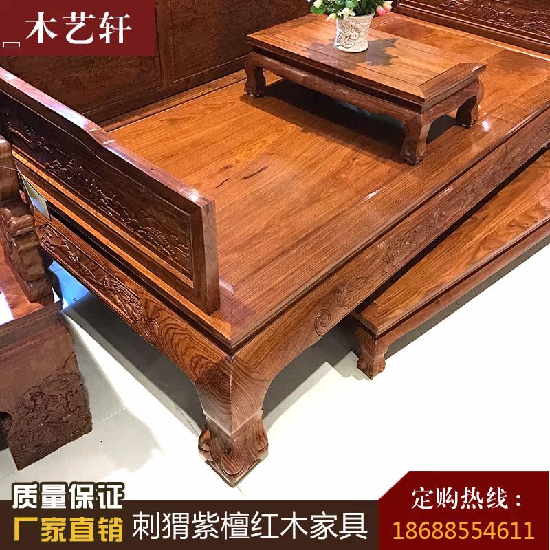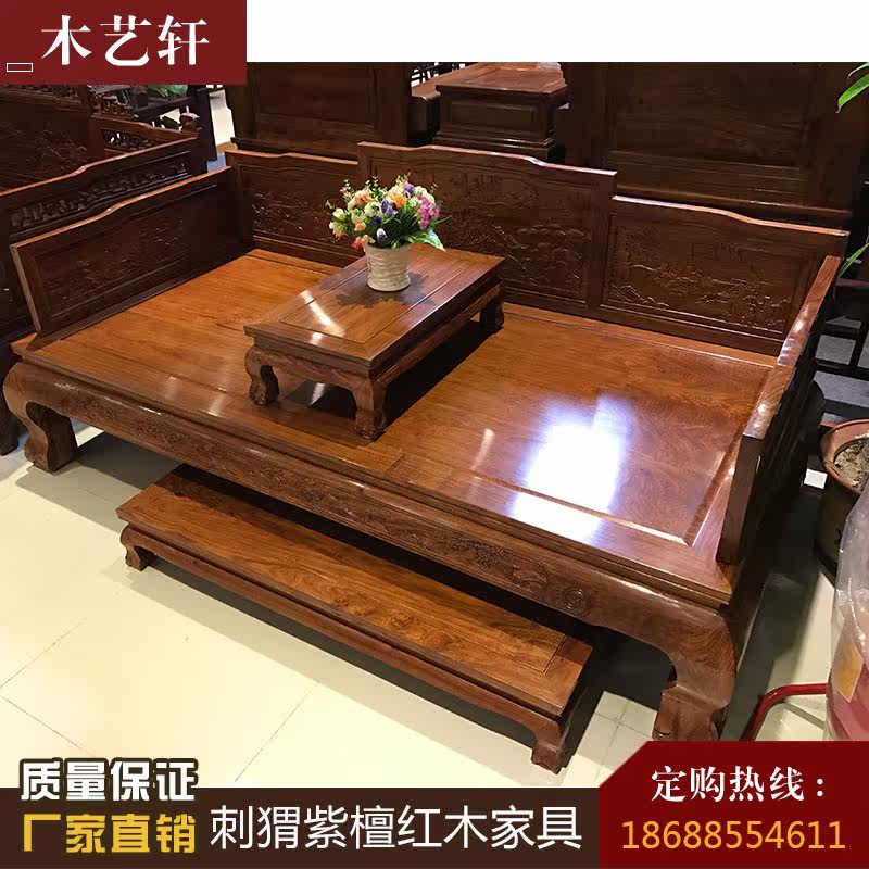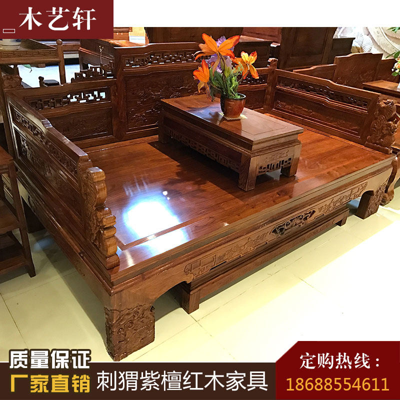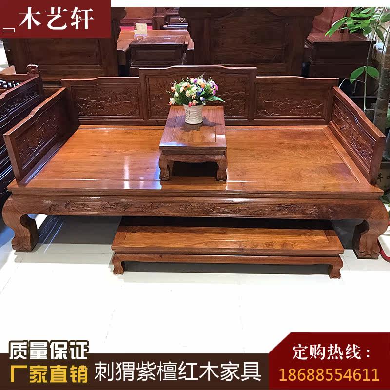 Redwood furniture hedgehoppy sandal Chinese Lion Luhan Bed Flower Pearwood Flower and Bird Solid Bed Combination