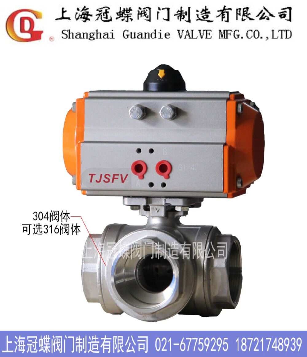Pneumatic three-way screw port ball valve Q614 5F-16P stainless steel T-type L-type pneumatic threaded three-way ball valve