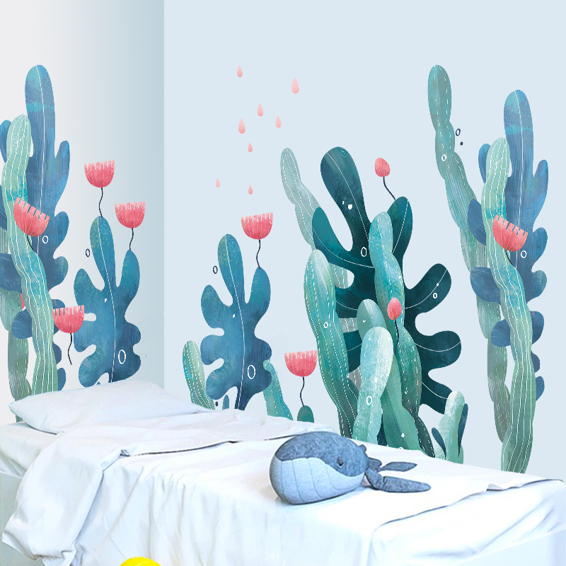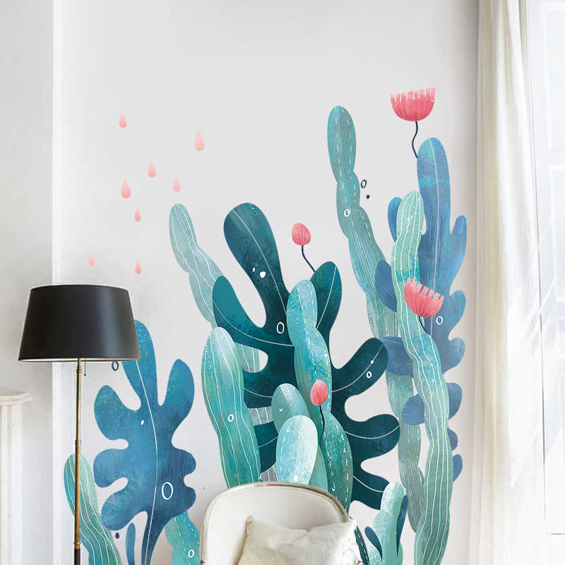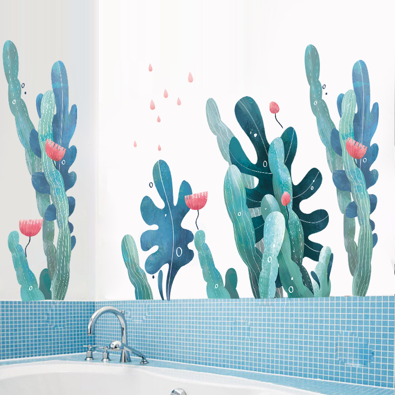Small fresh ocean plant wall stickers Bedroom living room dorm decorations Literary bathroom Skirting board stickers Self-adhesive
