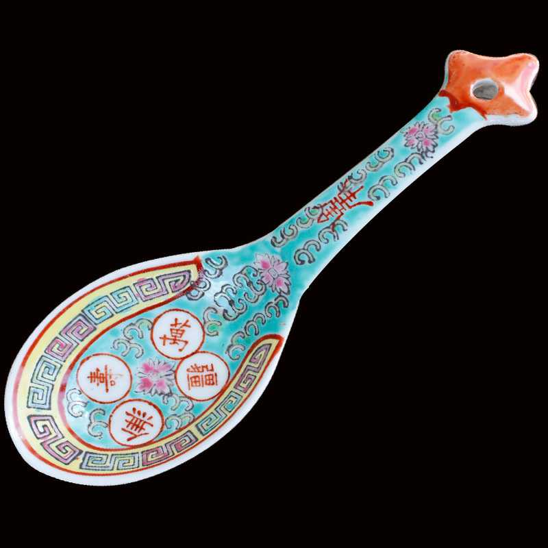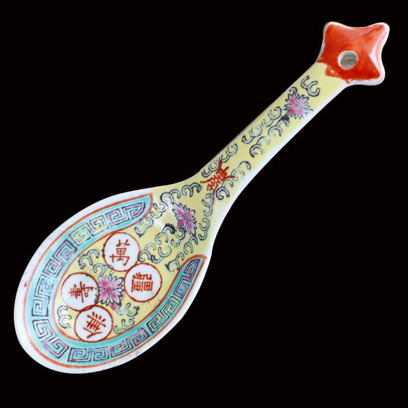 Jingdezhen Cultural Revolution Porcelain factory goods pastel hand-painted longevity boundless rice spoon large soup spoon Cultural Revolution nostalgia