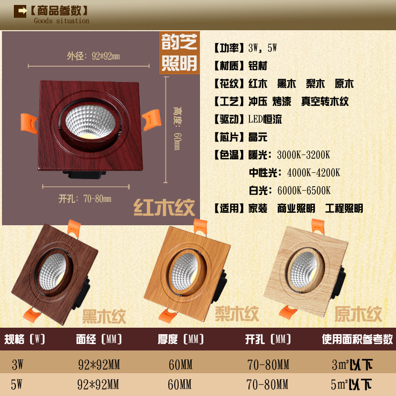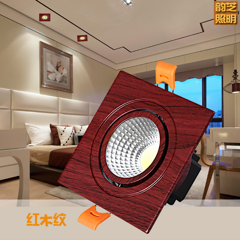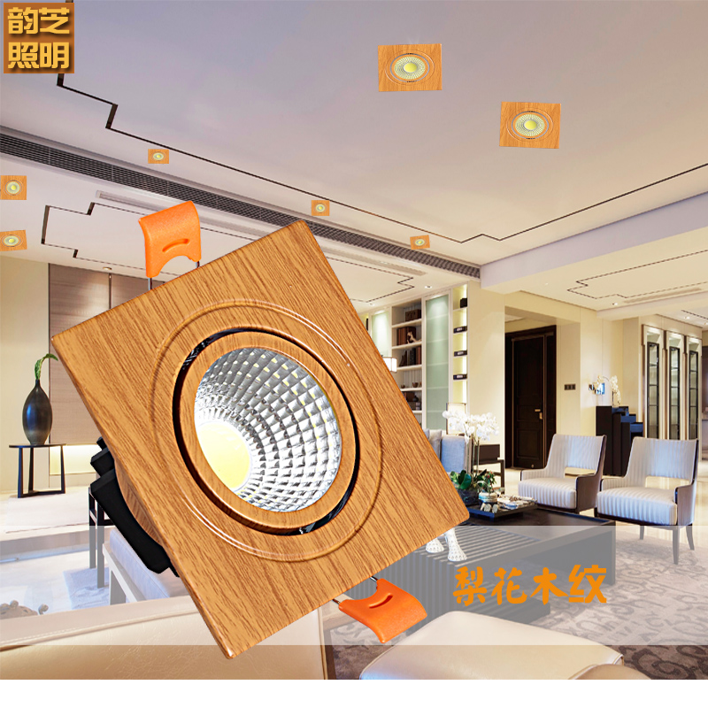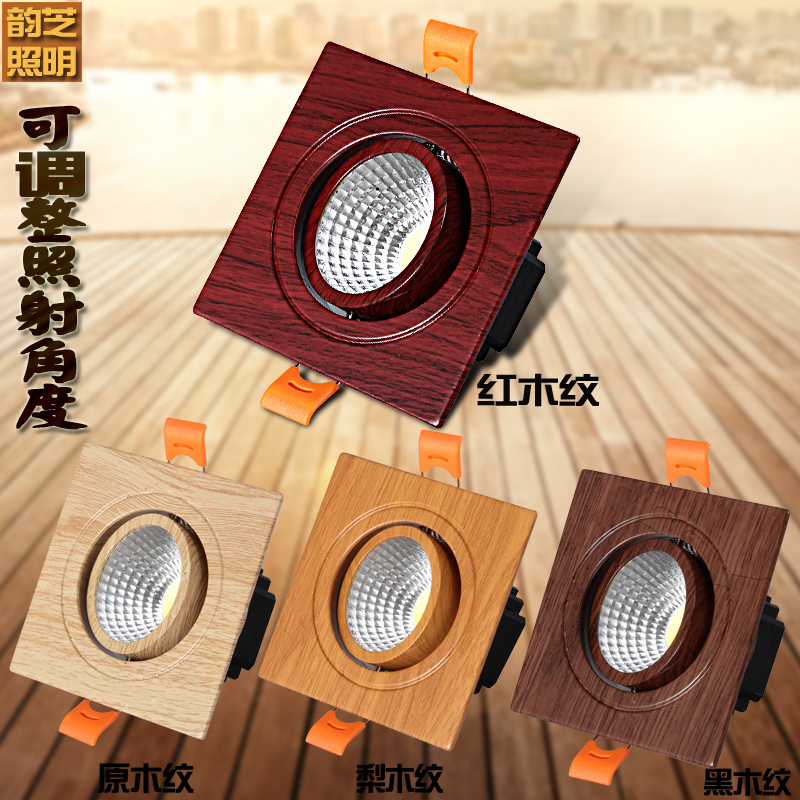 Downlight Chinese style LED bucket light wood grain embedded square concealed ceiling light COB spotlight modeling light cat's eye light