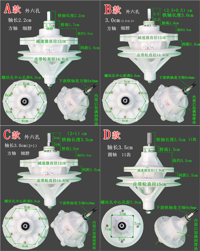 Semiautomatic washing machine reducer universal square shaft Rongthing Da transmission 4 holes 6 holes 11 gearboxes accessories