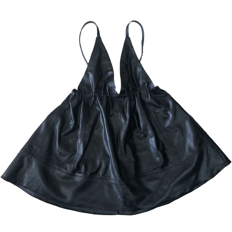 Autumn and winter leather slim dress women's 2021 new suspender V-neck skirt sheepskin fashion loose leather skirt