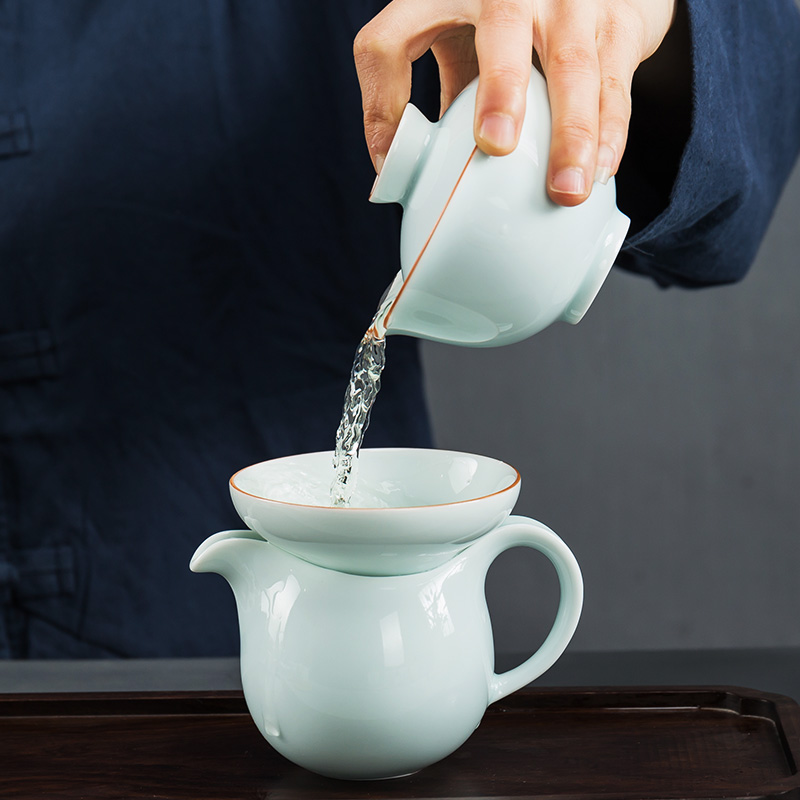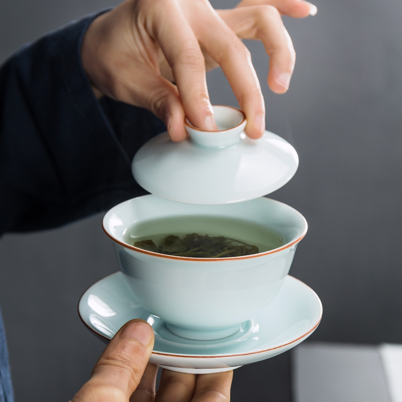 Dongzanglou Celadon three-cai Gaiwan Yingqing Teacup bowl Kung Fu tea cup Tea bowl Household eight treasures bowl Tea bowl