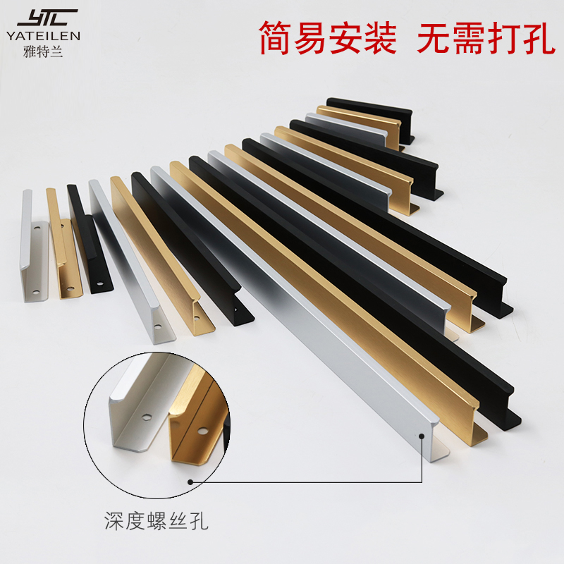 Aluminum alloy integral cabinet invisible handle black wardrobe door handle modern simple drawer secret handle? With car free punch
