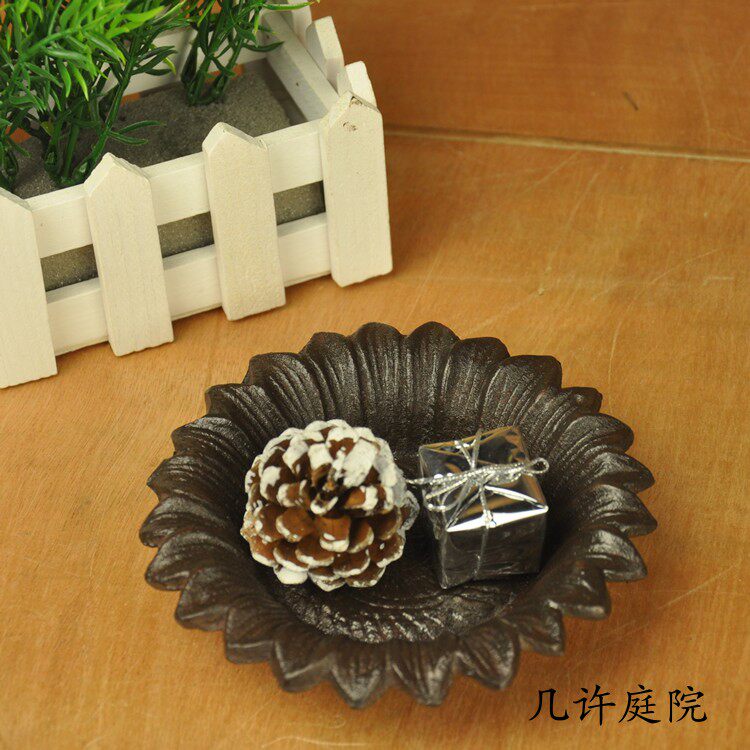 Cast iron sunflower bird feeder bird bath water basin feeder iron ornaments round garden courtyard ashtray