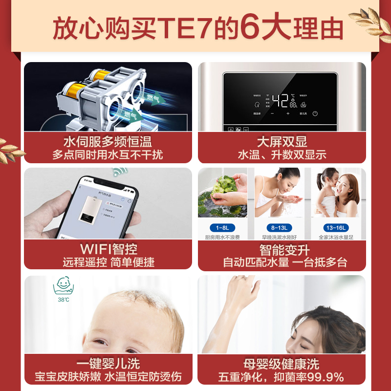 Haier gas water heater household natural gas 13 16 liters of water Servo constant temperature strong row type TE7U1 smart appliances