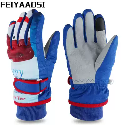 Children's ski gloves winter cold five fingers warm outdoor baby playing snow cartoon windproof waterproof plus velvet thickened