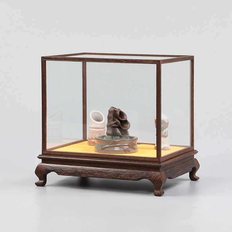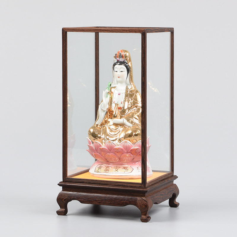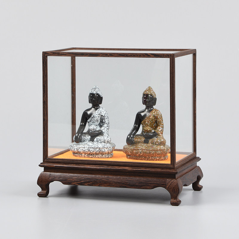 Chicken Wings Wood Base Glass Cover Solid Wood Buddha Vase vase Buddha Niche Pendulum with dust-proof display box Red wood engraving Custom