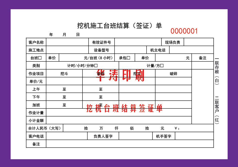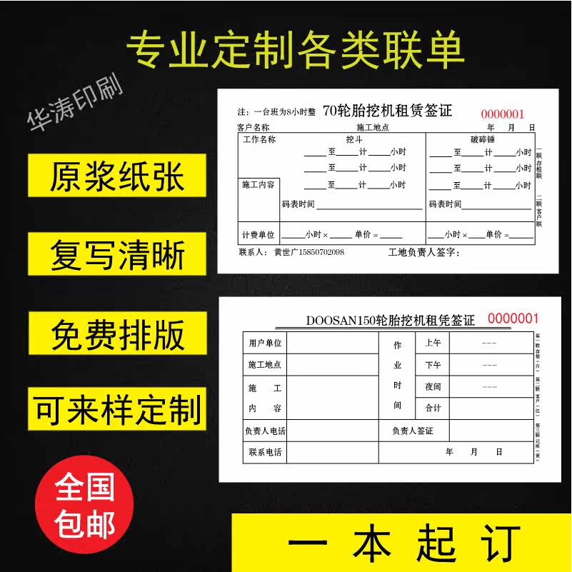 Strange Hand Construction Bench Class Settlement Visa Single Construction Machinery Construction Lease Digger Working Hours Settlement Ticket Receipt Book