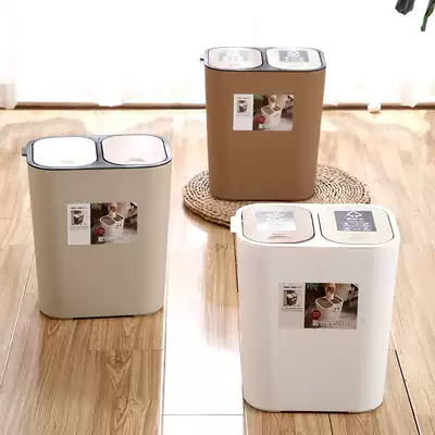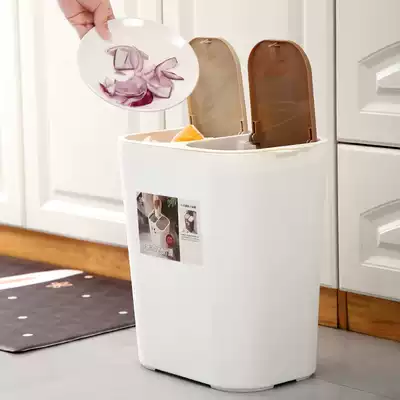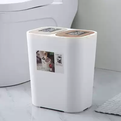 Dry and wet separation classification trash can double slot press type household living room kitchen with lid large trash can paper basket