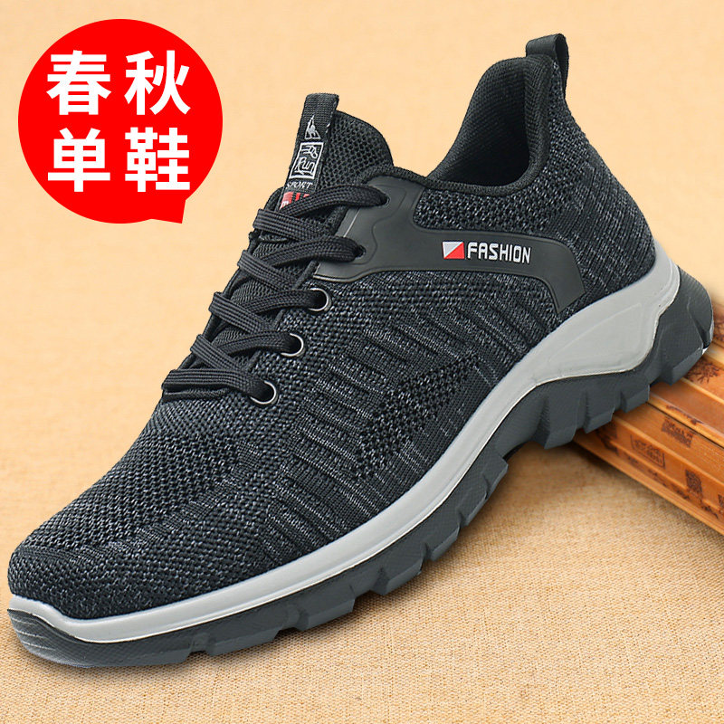 Spring and autumn old Beijing cloth shoes men's single shoes lace-up non-slip soft bottom middle-aged and elderly sports casual shoes breathable walking shoes