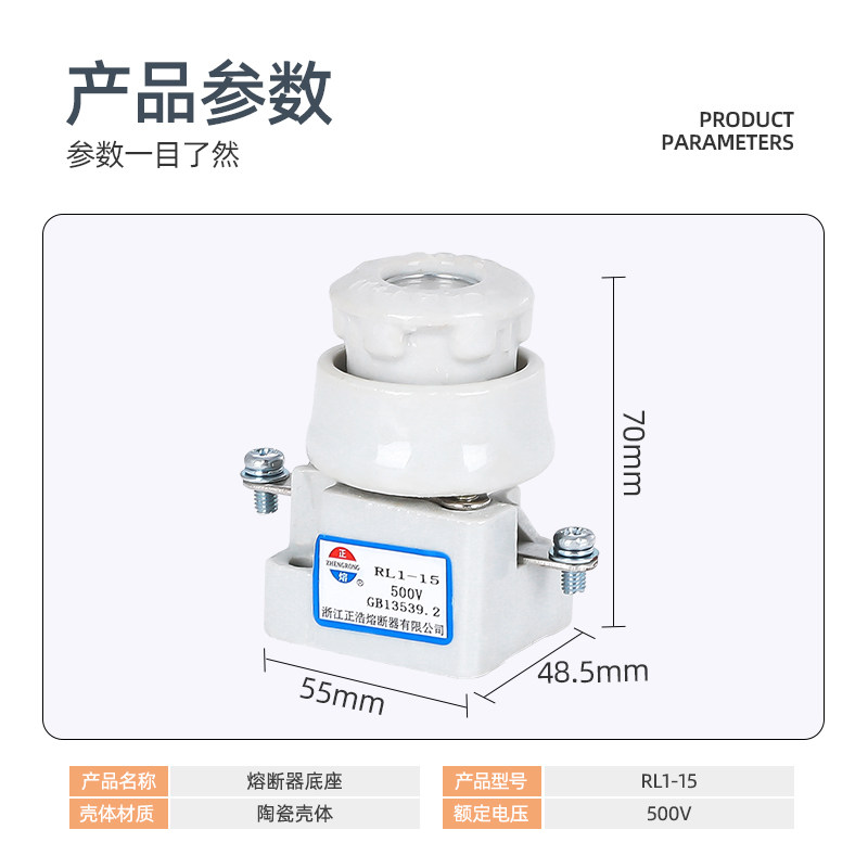Zhenghao positive fuse base RL1-15A 500V spiral ceramic fuse tube base safety seat