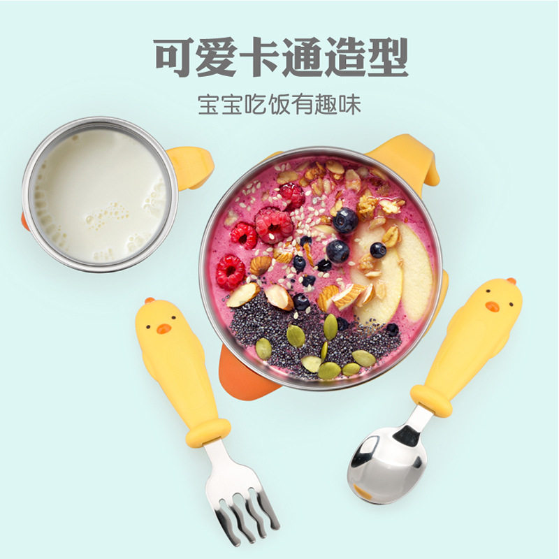 South Korea 304 stainless steel children's tableware water injection insulation bowl baby cup baby sucker bowl spoon fork non-staple food bowl