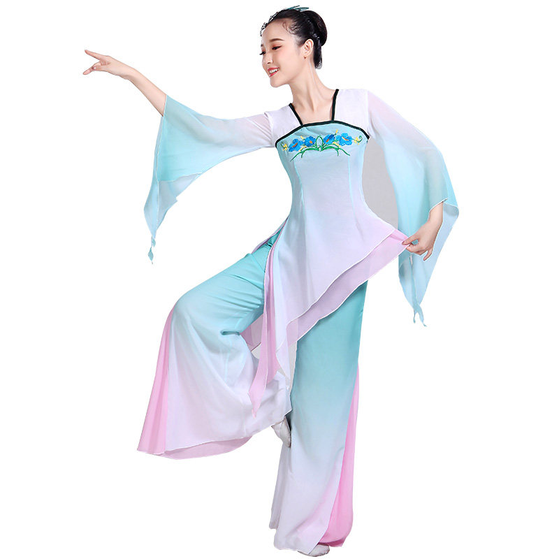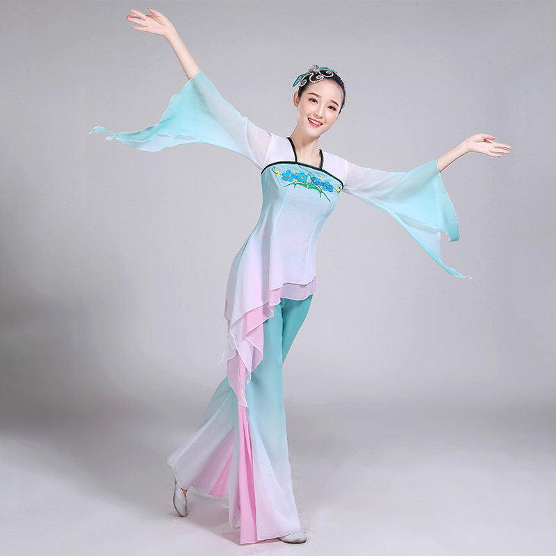 Yangko costume performance costume 2018 autumn new female adult transitional color chiffon elegant classical dance umbrella dance fan dance costume