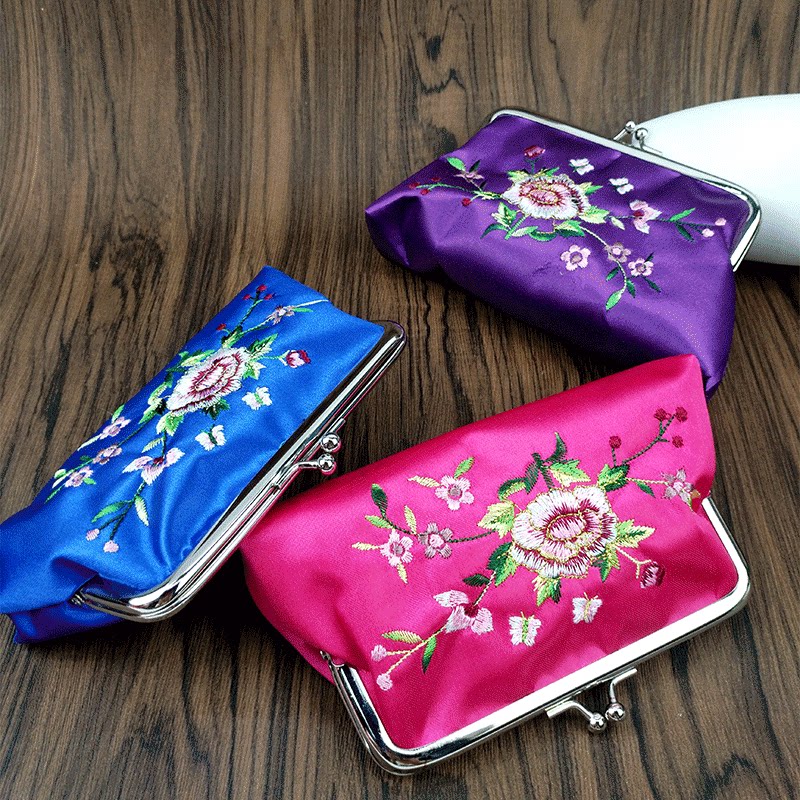 China Wind Gifts Silk Embroidered Embroidery Zero Wallet Mouth Red Box Flower Makeup Mirror Gift Box Suit Overseas Delivery Old