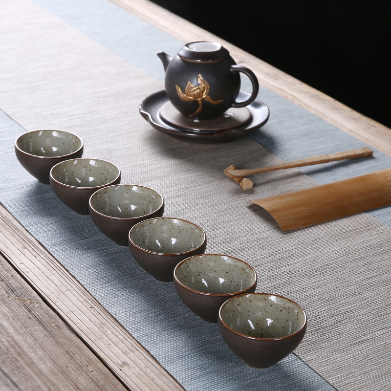Condensed Incense Cabinet Coarse Pottery Tea Cup Ceramic Kiln Change Color Glaze Small Tea Cup Koru Tea With Tea Tasting Cup Pu-erh Tea Cup