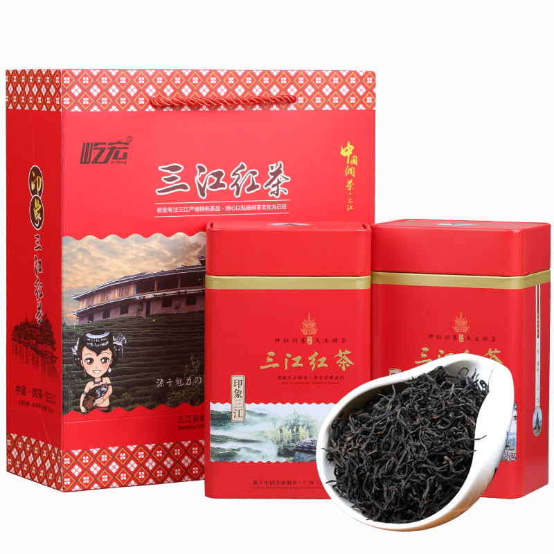 Yi HongGuangxi Liuzhou Sanjiang black tea 500g iron canned China Dong tea cloth central high mountain spring tea thick and fragrant type-Taobao