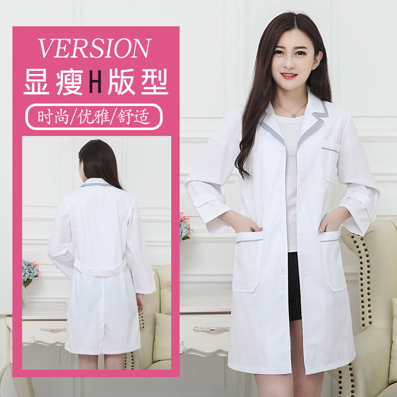 Korean version of white coat for women with short sleeves Korean version of white coat for women with long sleeves Korean version of white coat for men with short sleeves