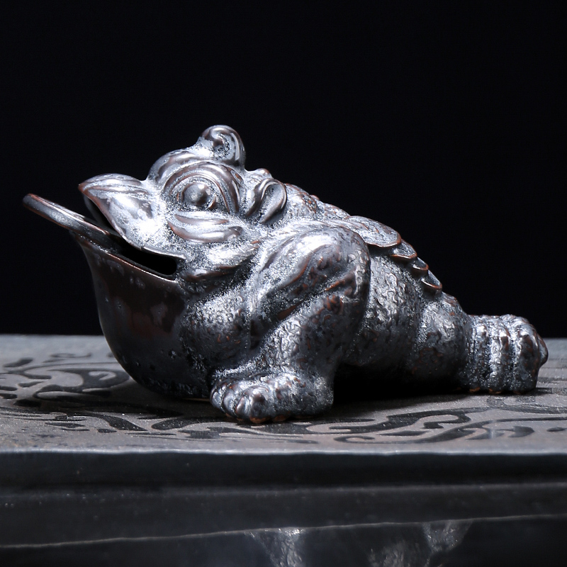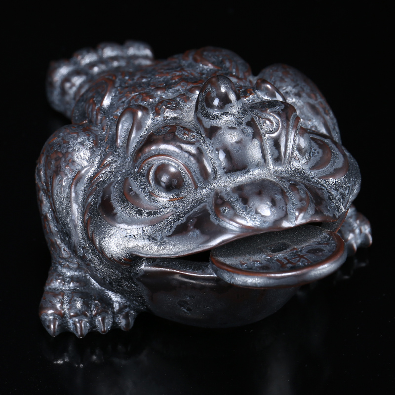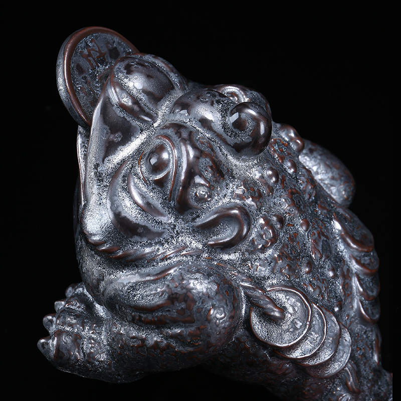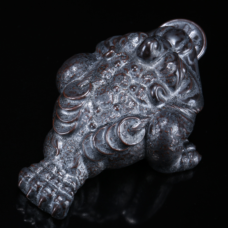 Jiajian kiln Li Jiajian stack Silver spot Tianmu tea pet three-legged lucky gold toad tea pet decoration article play boutique can be raised