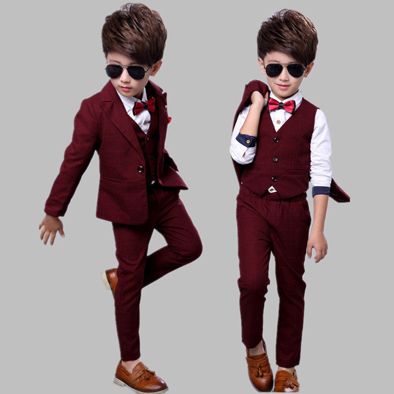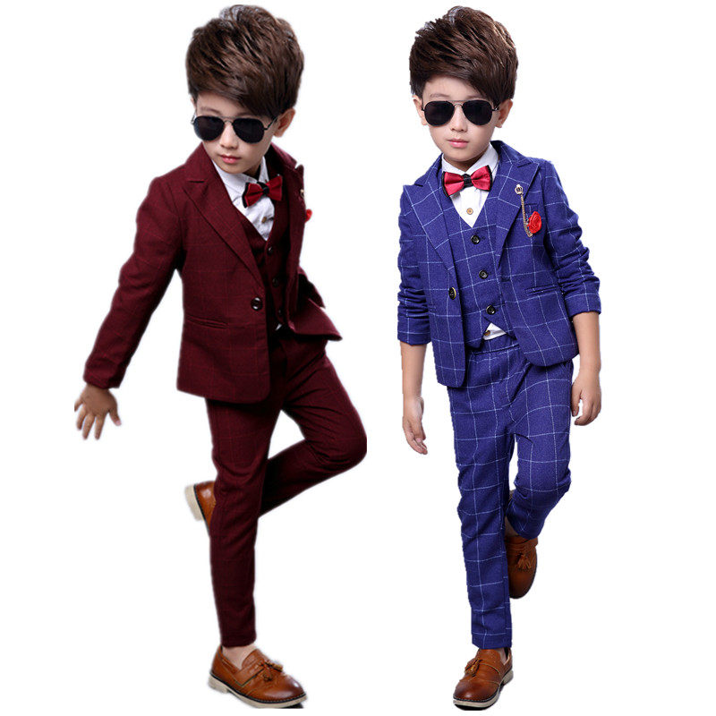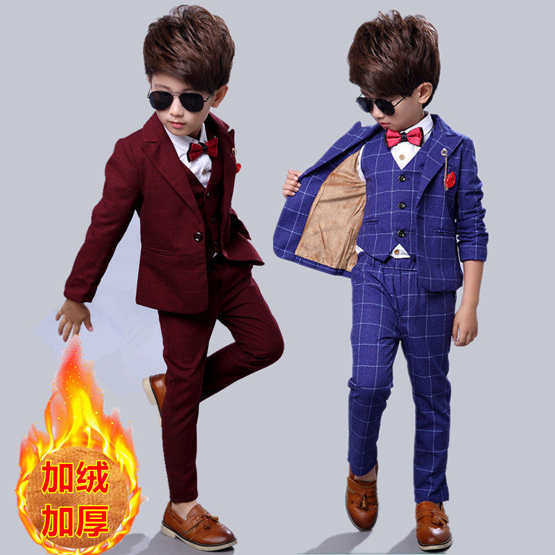 Boys' suit suit plus velvet thickened children's small suit three-piece flower girl dress 3-year-old boy suit autumn and winter 4