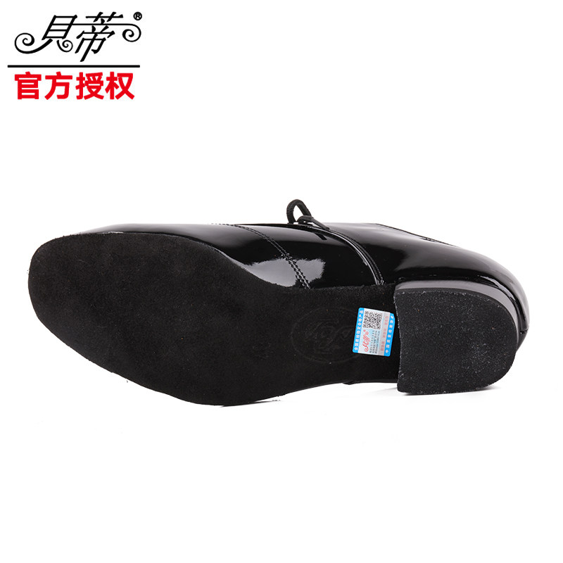 Betty Modern Dance Shoes Men's Adult Leather Straight Bottom National Standard Waltz Social Dance Shoes Bright Leather Soft Bottom
