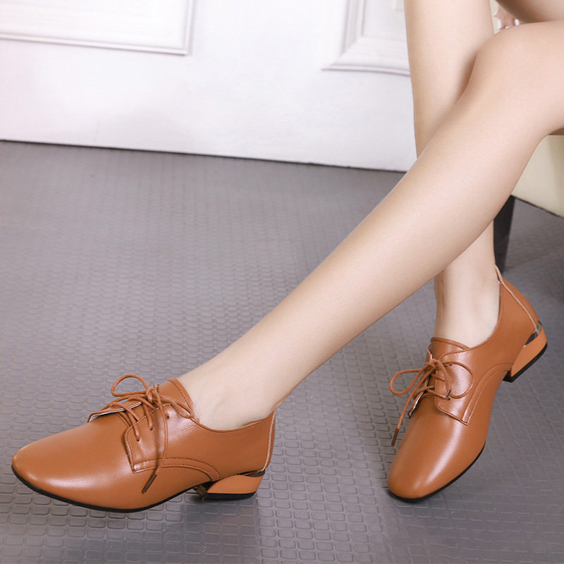 Shoes women's spring 2022 new thick-heeled British single shoes women's leather fashion square toe lace-up all-match low-heeled women's shoes
