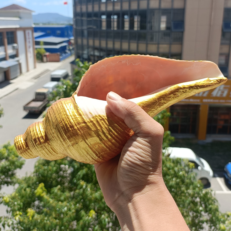 Natural super conch shell long incense nut screw gold-plated Taoist horn collection gift ornament screw number