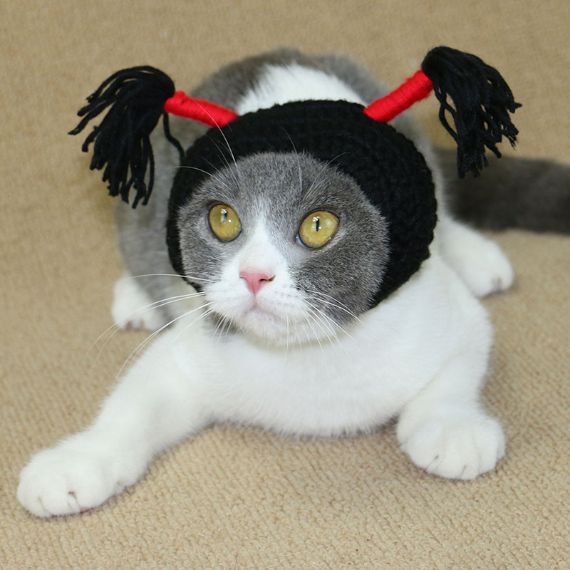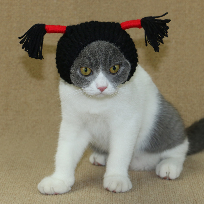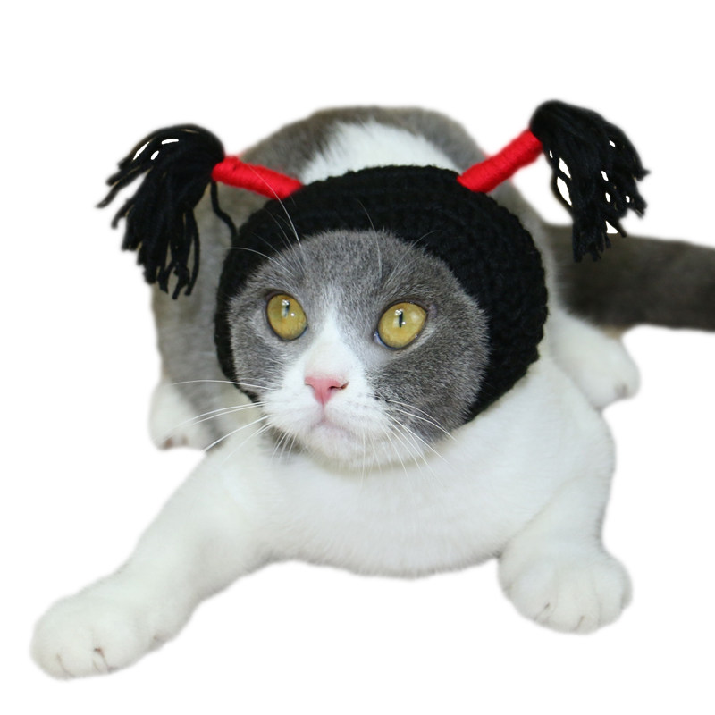 Handmade Kitty Hats Head Accessories Black Pussy Small Braids Cat Hat Shake Sound Funny Pet Hat Dog Headgear Cat Hat-Taobao