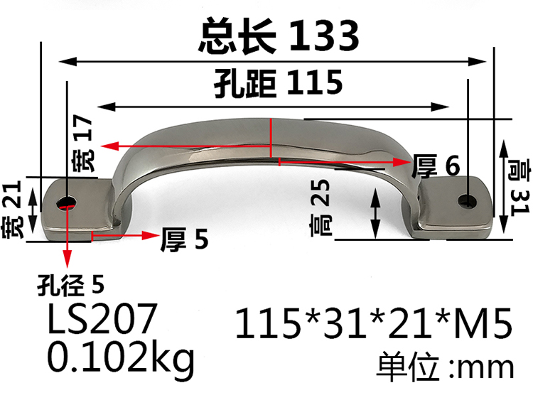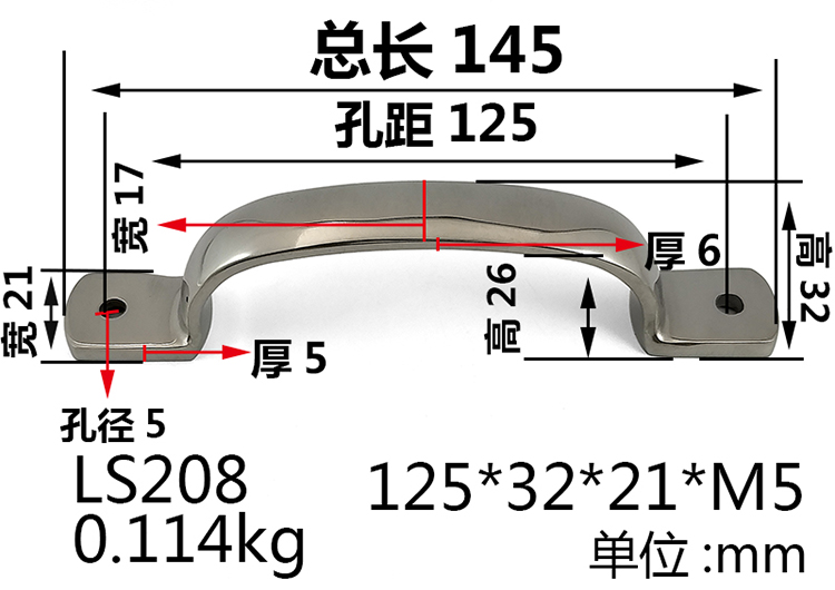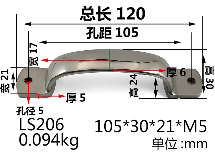 304 Stainless Steel Handle Heavy Handle Equipment Spare Parts Industrial Handle Handle 105115125m m