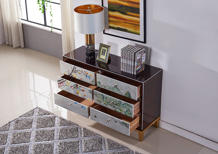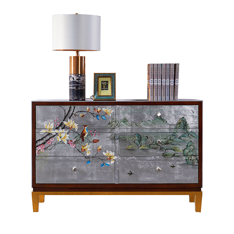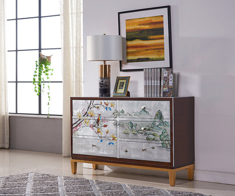 New Chinese style modern minimalist living room porch cabinet solid wood furniture silver foil drawer dining cabinet bedroom painted six drawers