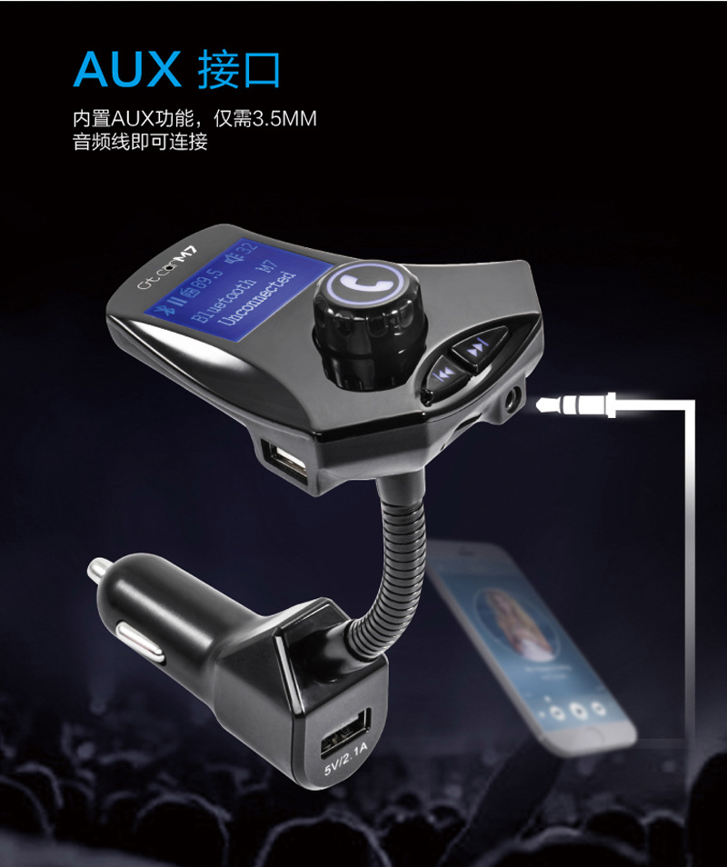 M7 on-board wireless Bluetooth hands-free smart phone music on-board MP3U disc TF card car on-board charger