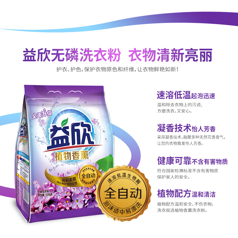 Yixin washing powder Lavender fragrance household phosphorus-free washing powder Hand washing machine washing powder bright white stain removal 508g