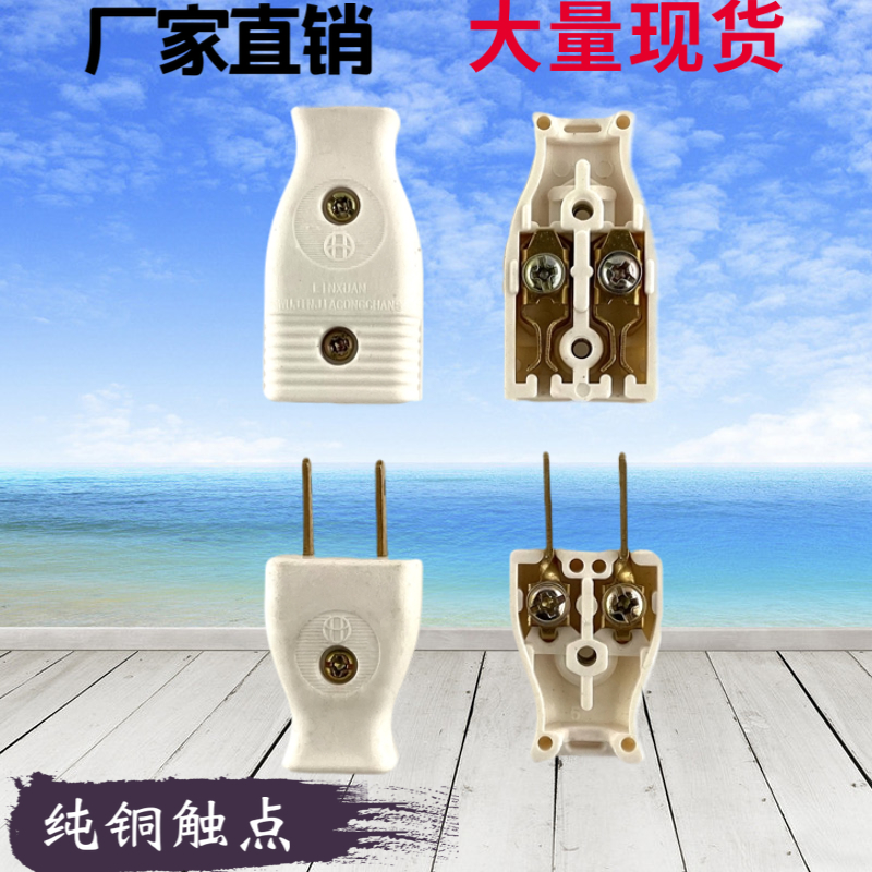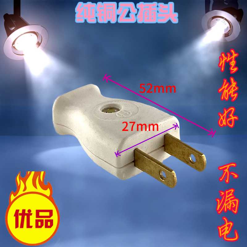 Monitor security power supply mother plug extension cord male head national standard two feet butt plug 2 holes small socket copper plug-in