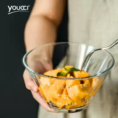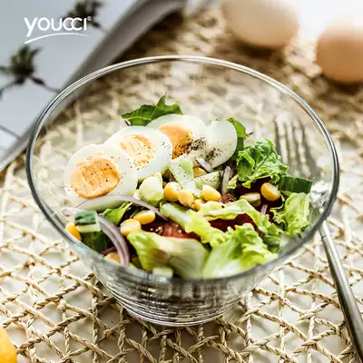 Home transparent glass bowl set ins Wind large fruit bowl vegetable salad bowl dessert bowl thickened glass Basin