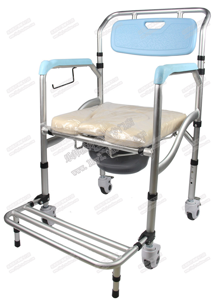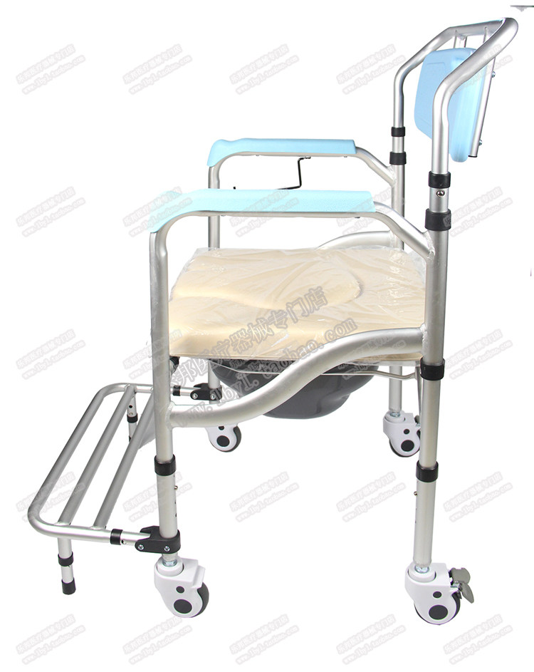 Folding aluminium alloy with wheel brake pedal mobile toilet home old physical and mental disorder for pregnant woman sitting in a toilet bath chair stool