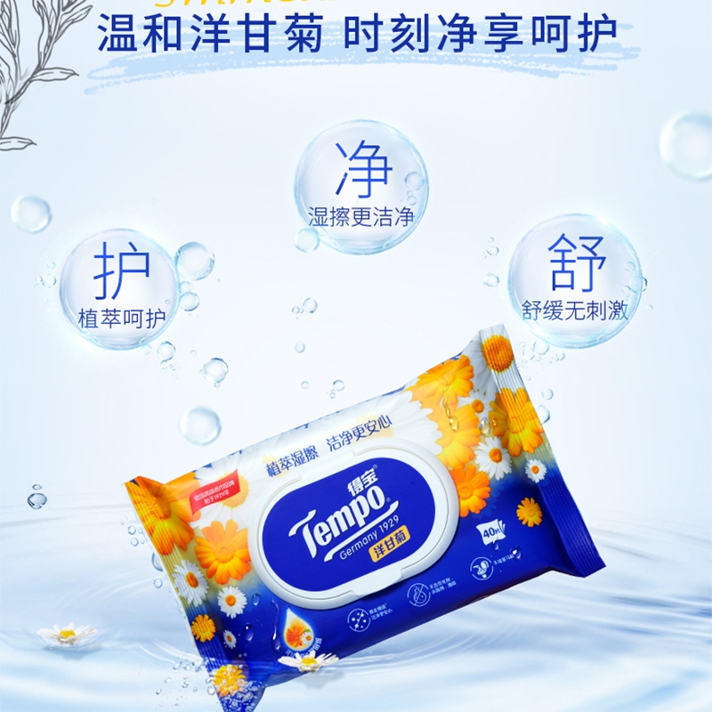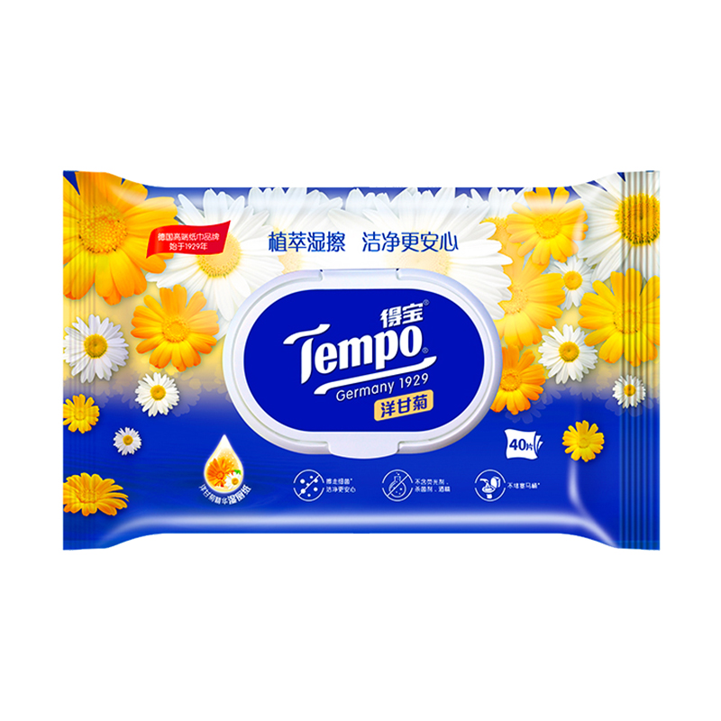 (POLY 100)Tempo Duplo Wet Toilet Paper 40 pieces 1 pack Adult Private parts Chamomile Portable Bag
