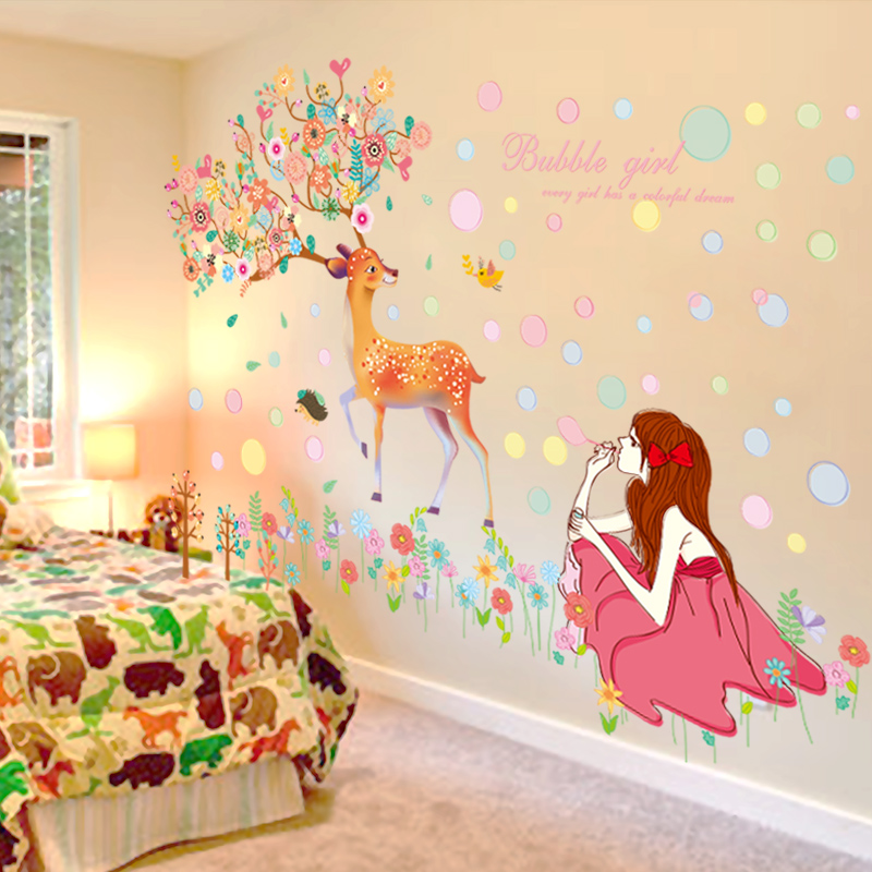 Web celebrity rent big transformation girl personality creative bedroom bedside decoration bedside wall self-adhesive wall paper wall sticker