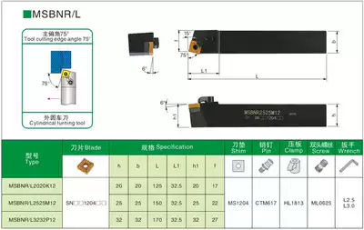 75 degree external tool holder MSBNR MSBNL 1616H12 2020K12 2525M12 3232P12
