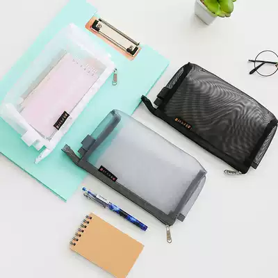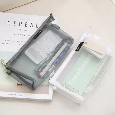 Simple style transparent large capacity pencil case for primary school students examination special stationery bag grid zipper male and female Net gauze college entrance examination pencil bag cute storage bag portable pen case