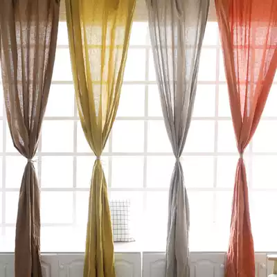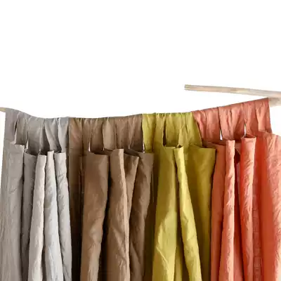 Tang Dynasty impression custom color brown yellow pure linen curtain semi-shading finished product modern simple Nordic style